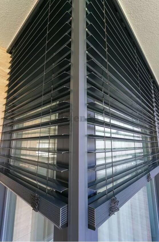 外部鋁窗格的覆蓋面積通過調(diào)整面板的角度、寬度和長度進行變化,并根據(jù)每個房間和閣樓的開口,通風(fēng)口和空調(diào)出口的位置確定百葉窗孔徑。