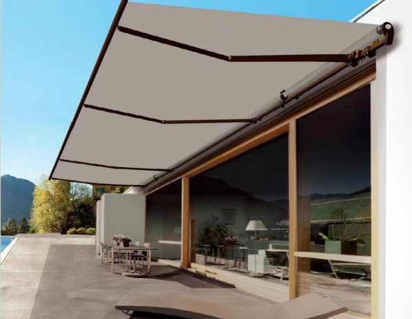 3、曲臂遮陽篷,在遮擋炎炎夏日的同時,能夠使強烈的陽光以漫射光的形式反射入室內(nèi),使室內(nèi)光線明亮而不眩目,并且不影響從室內(nèi)看出的窗外景觀,將人們的生活空間從室內(nèi)延伸到室外,創(chuàng)造出了新的居住空間;