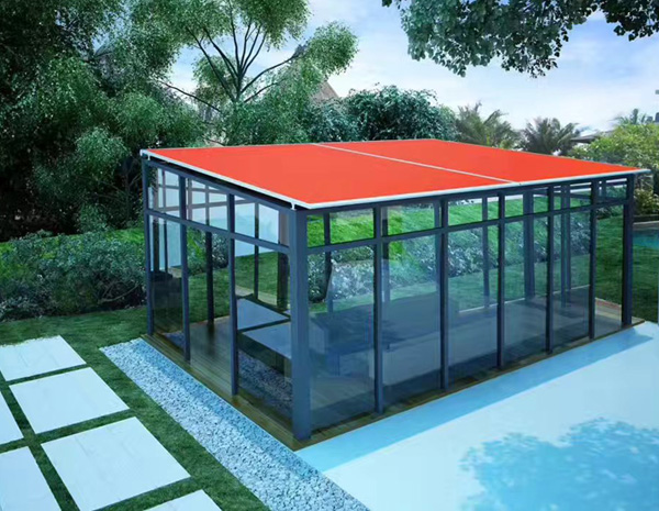 天幕遮陽篷 ,也稱作戶外遮陽天幕,是室外頂部專業(yè)配套應(yīng)用的伸縮篷,十分適用于各類玻璃陽光房頂和采光頂、中庭、天井和露天陽臺的外遮陽,隔熱效果遠勝于玻璃房各種室內(nèi)遮陽產(chǎn)品,可明顯降低室內(nèi)溫度,從而達到節(jié)能作用。也可直接取代鋼構(gòu)陽光房和亞克力陽光板工程項目,更具備靈活多用的功能。結(jié)構(gòu)設(shè)計精密牢固,抗風力極強,由大型前檐、后通和電機等整體機構(gòu),性質(zhì)高貴豪華、開闊大方,不免伸縮繃平,最大應(yīng)用面積可達30平方米。它可以通過數(shù)字化遙控來操作也可以安裝一個智能風光雨感應(yīng)裝置通過感應(yīng)外界從而自動調(diào)節(jié)。一年四季都能替建筑靈活遮陽篷陽光。夏日炎炎,更是它發(fā)揮作用的季節(jié),無論是直線或是弧度的房屋,都能根據(jù)規(guī)格制作。它一般用于度假酒店和一些高檔陽光房。