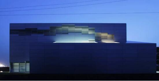 建筑在西面的墻上放置了照明燈。由于燈的放置位置不統(tǒng)一,因此通過對光線不規(guī)則的分割,擴大了空間的流動感,產(chǎn)生了具有表現(xiàn)力的空間。