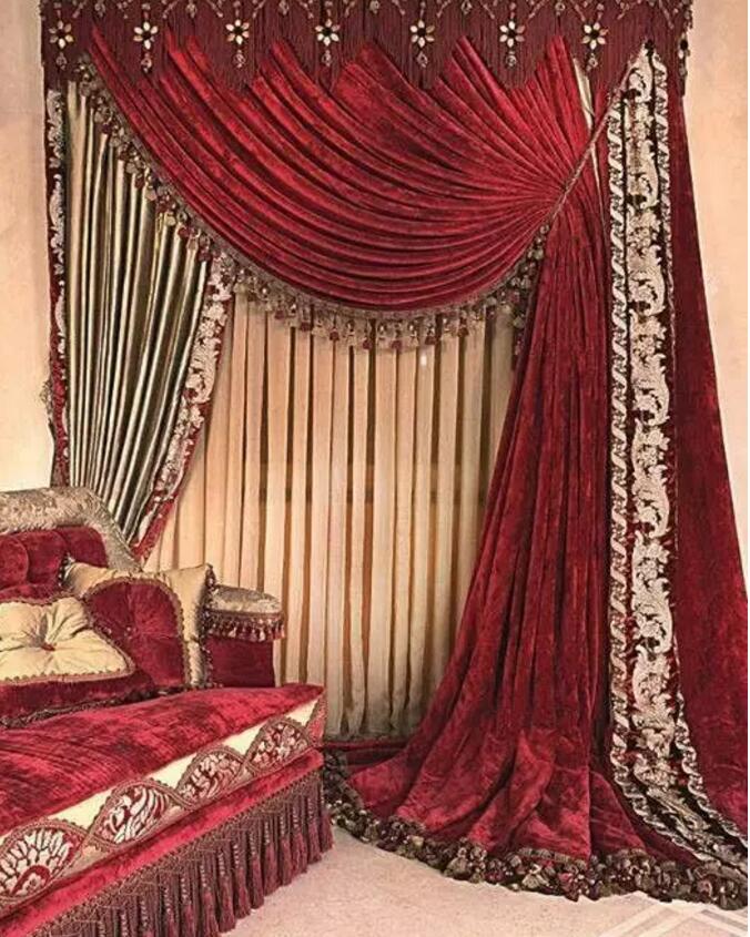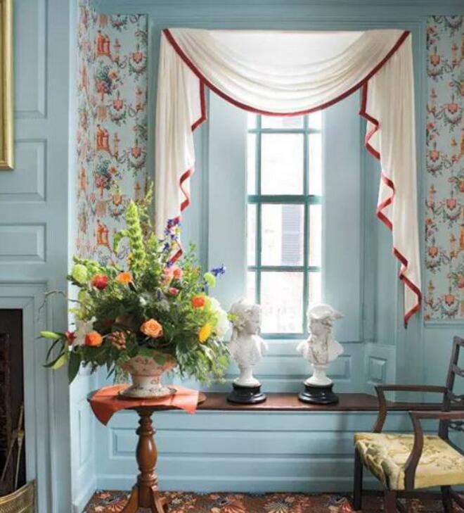 垂波幔好像窗簾的披肩,樣式美觀多變,造型優(yōu)雅大氣,線條富有歐式古典美,是從古至今都非常受歡迎的樣式。