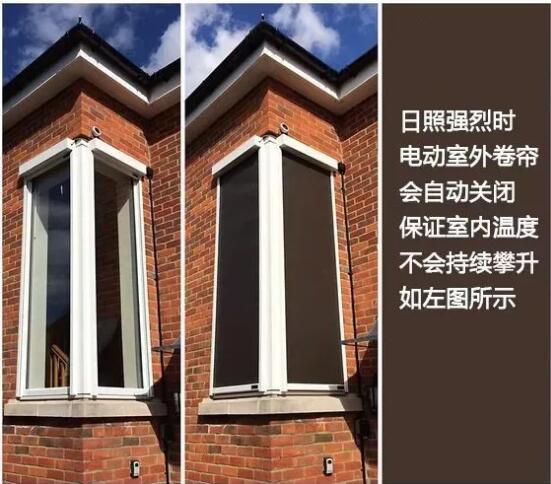 電動戶外卷簾配有定時器,這意味著它們可以在太陽光不能忍受的時候自動關(guān)閉。